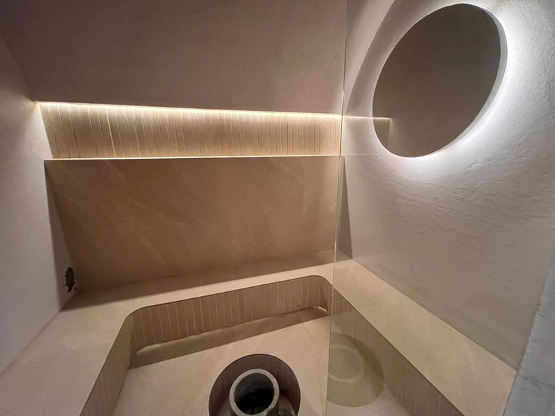Los materiales nobles, como la madera, la piedra y el vidrio, se combinan para generar un ambiente cálido y sofisticado. La iluminación indirecta resalta las texturas y las formas, aportando una sensación de serenidad y exclusividad.