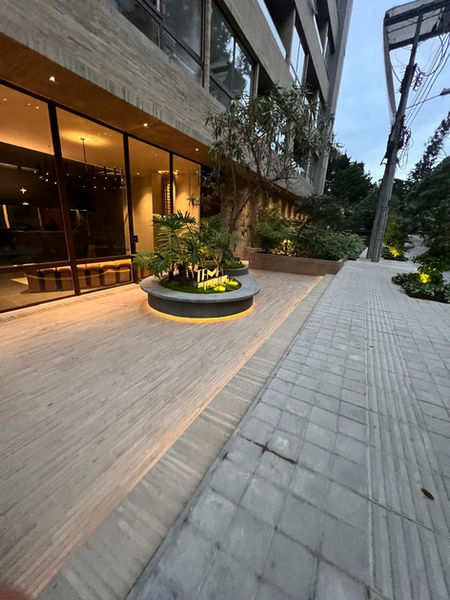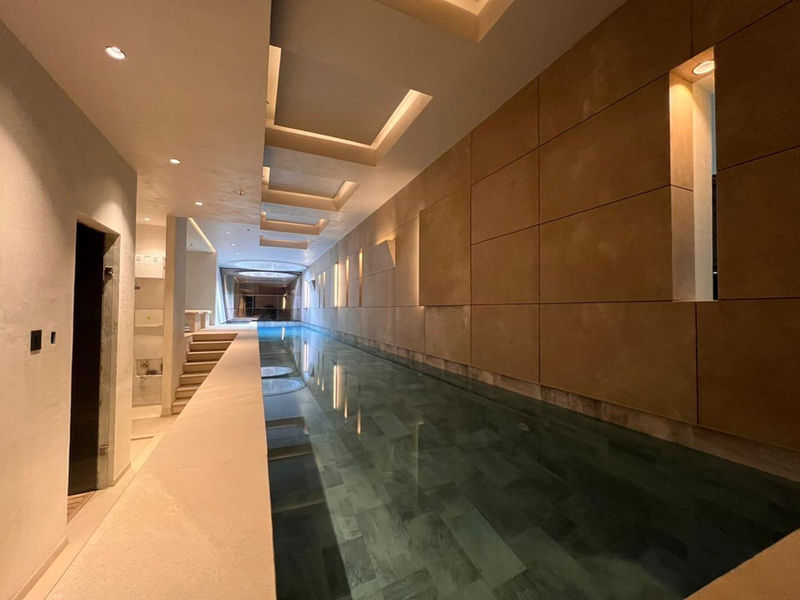 El paisajismo, cuidadosamente integrado, establece un diálogo entre la naturaleza y la arquitectura, con jardines orgánicos, espejos de agua y elementos escultóricos que invitan a la contemplación. Espacios interiores como el gimnasio, la piscina y la sauna están diseñados con un enfoque en el bienestar, donde la luz y la materialidad generan un refugio de tranquilidad.